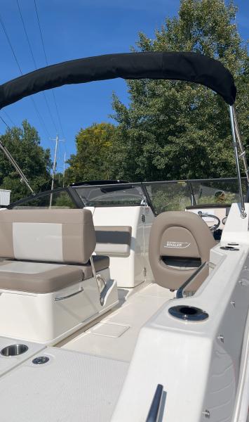The 210 Vantage just will surprise you. It’s a boat designed to meet the needs of the widest possible range of boaters—from fun-loving families to hardcore anglers. A dual console cockpit with wraparound windshield provides functional comfort for persons. Comfortable seating in the bow, cockpit and stern allows for family-sized crews to relax all day. And roomy storage throughout the boat means you can load in all the gear you need for any type of adventure on the water. At a mere 21 feet, it’s easily trailerable, but 250 horsepower on the transom means you can get up and go when you’re ready to ride.